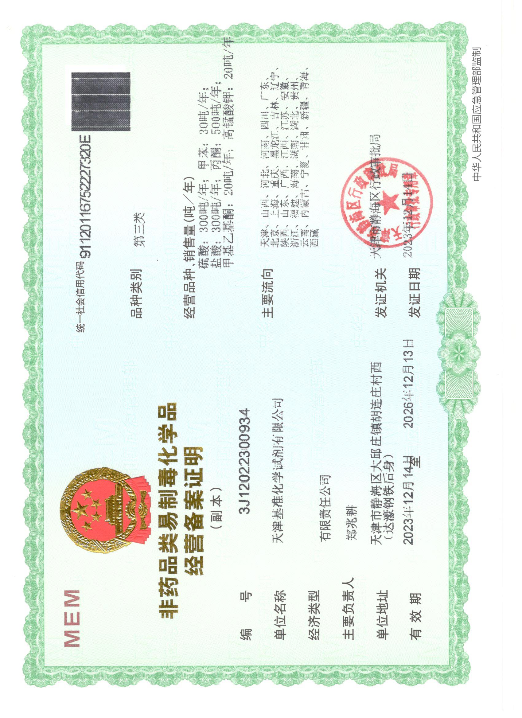 天津基準(zhǔn)化學(xué)試劑有限公司成立于2003年,是一家集研發(fā)、生產(chǎn)、銷(xiāo)售于一體的化工企業(yè),我們致力于為生物醫(yī)藥、精細(xì)化工、食品工業(yè)、